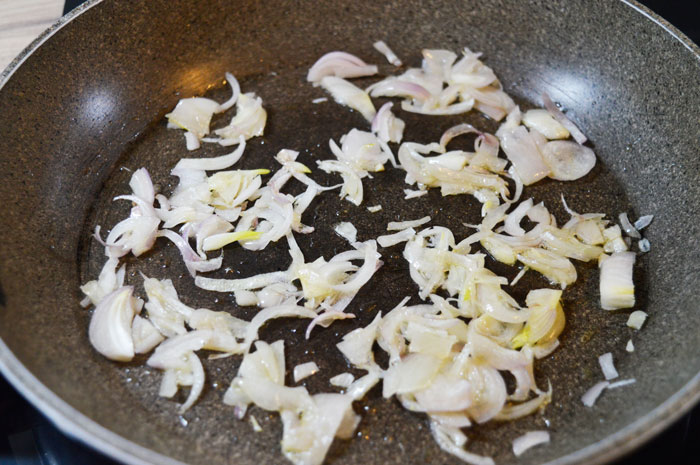 Add the tomato sauce and the seasoning you like to the onion and cook for 15 mins on low flame.